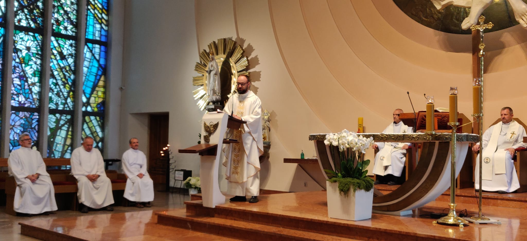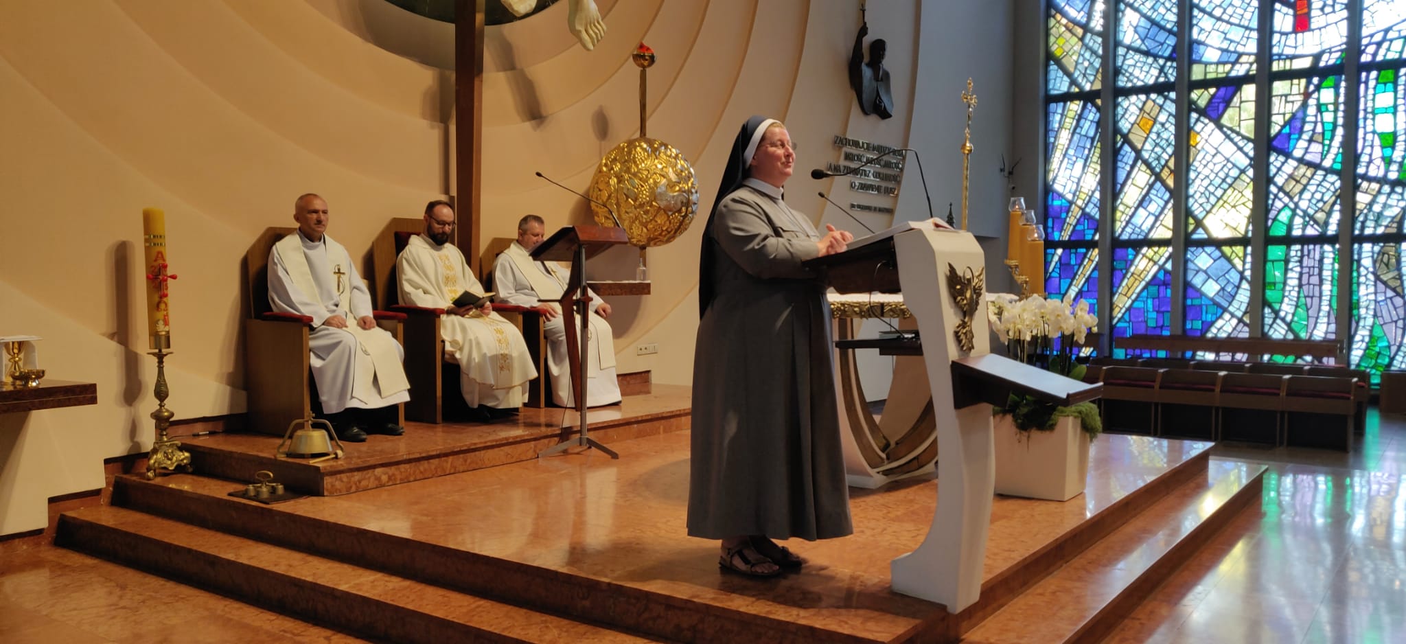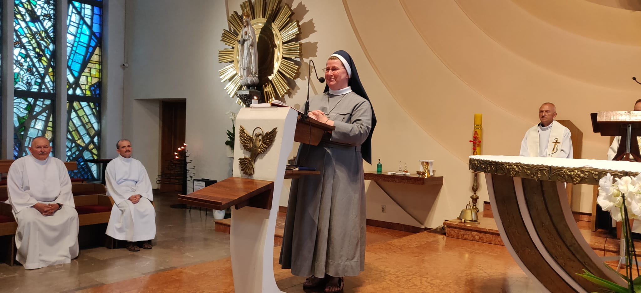 Siostra Ezechiela przyjechała do nas prosto z Kamerunu, gdzie na co dzień pracuje w aptece na placówce misyjnej w Tcholire. Podczas mszy świętej podzieliła się z wiernymi swoim doświadczeniem misyjnym, opowiadając o codziennych wyzwaniach i radościach płynących ze służby potrzebującym. Jej świadectwo było pełne autentyczności i głębokiej wiary, która pozwala jej z oddaniem służyć lokalnej społeczności w trudnych warunkach afrykańskiej rzeczywistości.